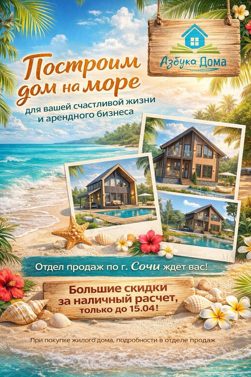 Представьте: утренний бриз, шум прибоя, тёплый солнечный свет, играющий на стенах вашего дома. Мечтаете о жизни у моря или хотите создать прибыльный арендный бизнес? Компания «Азбука Дома» поможет воплотить эту мечту в реальность!