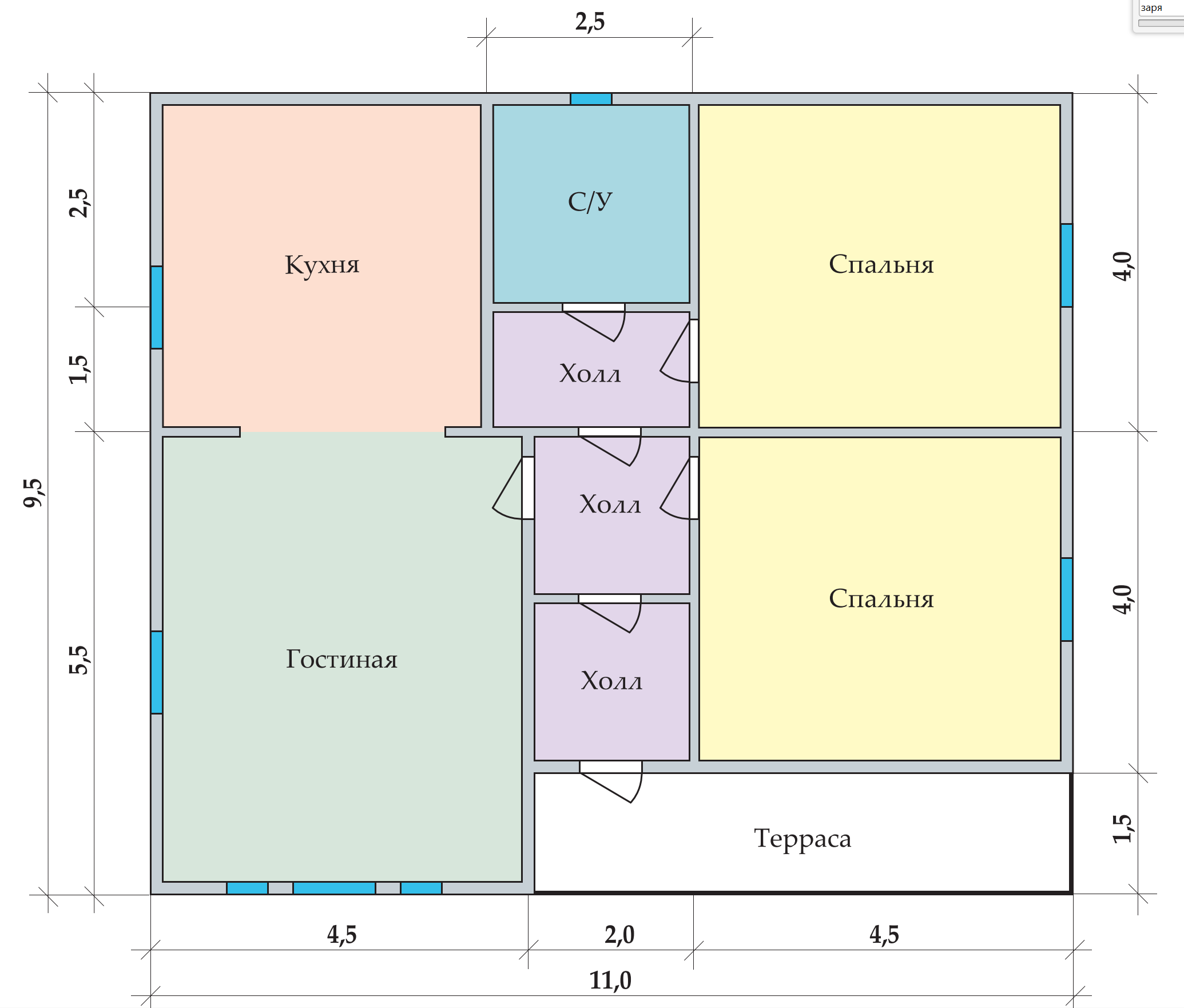 Одноэтажный коттедж «Заря 11х9,5» – прекрасный вариант, если вы мечтаете об уютном и теплом доме, в котором так приятно собираться всей семьей.